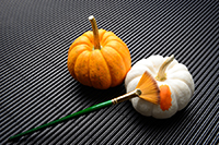 Don't panic if you didn't have time to create elaborate costumes for Halloween or turn your yard into a haunted house or showcase of fall beauty. There are simple things you can do to prepare for October 31, with materials that are easy to access. Pumpkins don't have to be jack-o'-lanterns - smaller ones can be displayed on a tray with jars of jam or colorful plants. But if it's all about the jack-o'-lantern for your family, at least eliminate the mess and the concerns about using sharp knives around the kids: turn your pumpkins into chalkboards with chalk paint. After thoroughly scrubbing your "canvasses," cover part of the pumpkin with chalkboard paint. Make sure you apply several coats of paint and let it dry between coats. Once dry, use your "pumpkinboard" to draw family caricatures or scary faces, or write messages for trick-or-treaters. You can use pumpkins of various sizes and shapes, and white pumpkins with black paint will lend a ghostlike